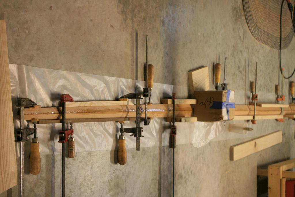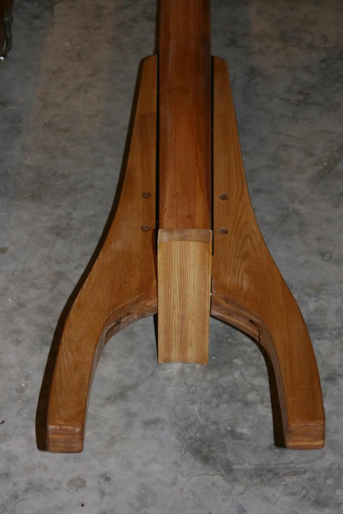 Now, on to the gaff jaws. I will use ash for the jaws. To get the correct curvature, I will use the old jaws (underneath in the photo below) as a laminating jig for the new: